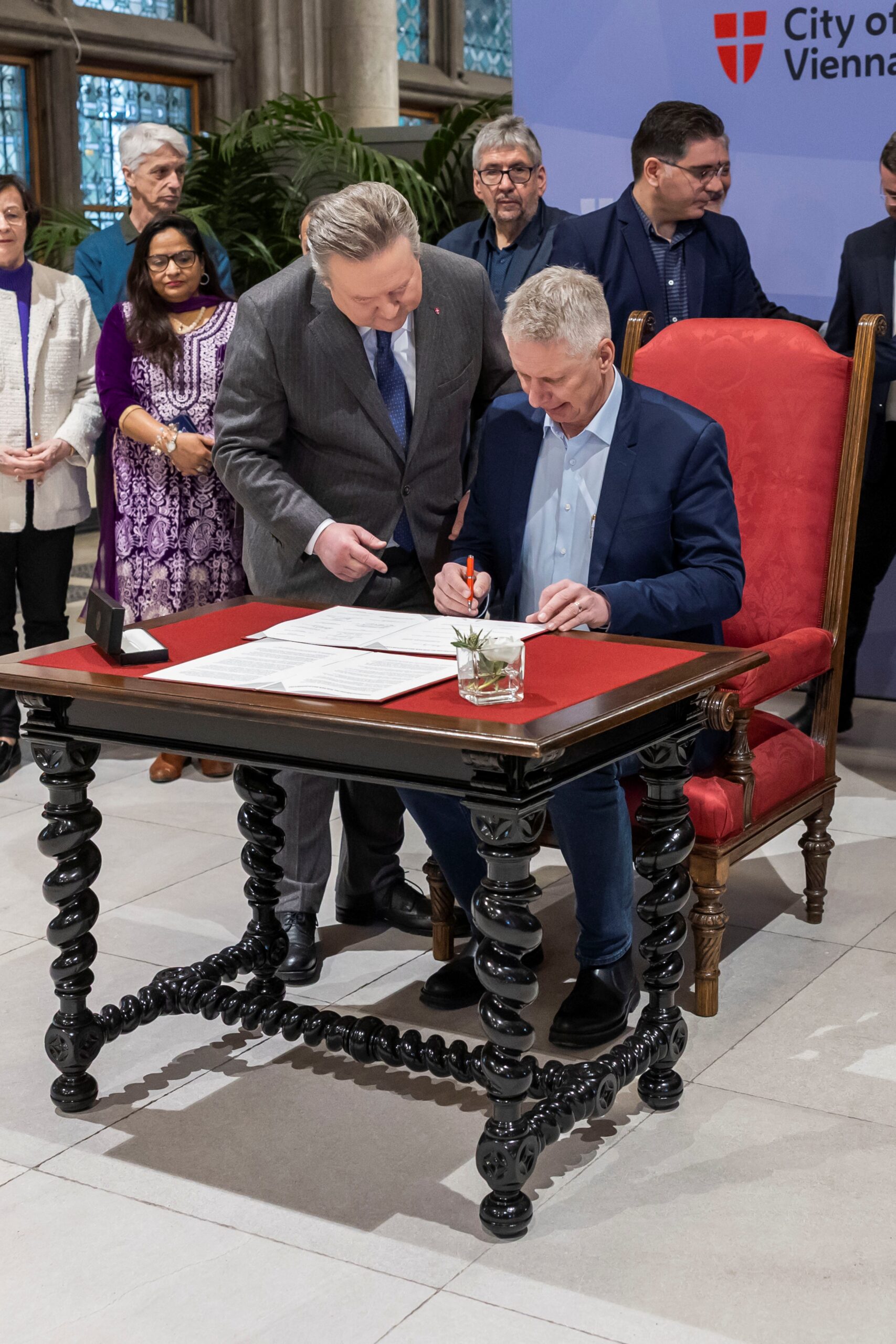 Unterzeichnung der Grundsatzerklärung im Wiener Rathaus