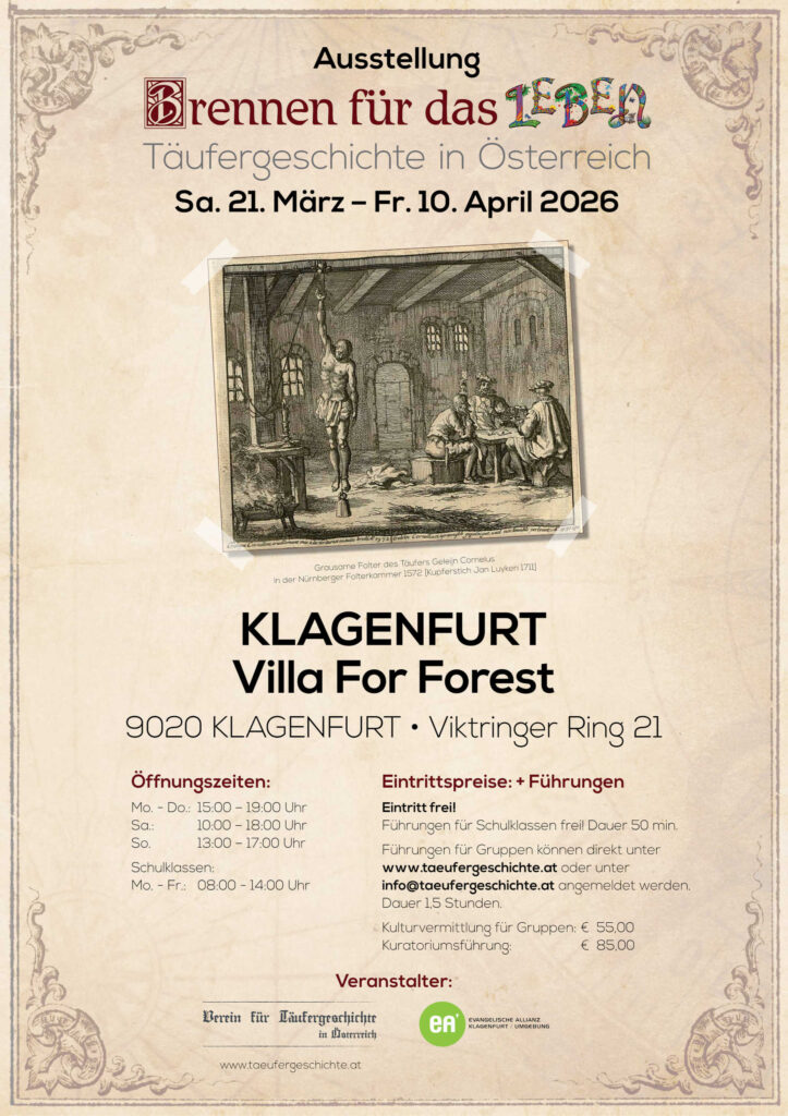 Führungen für Gruppen können direkt unter www.taeufergeschichte.at oder unter info@taeufergeschichte.at angemeldet werden.