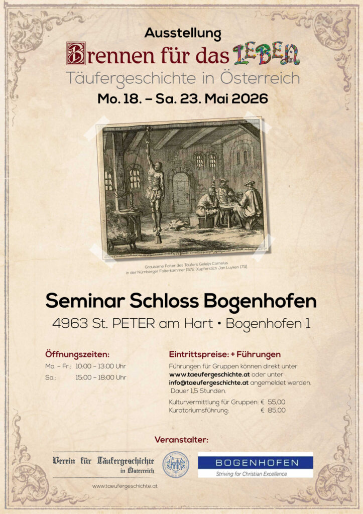Täuferausstellung „Brennen für das LEBEN“ – Schloss Bogenhofen